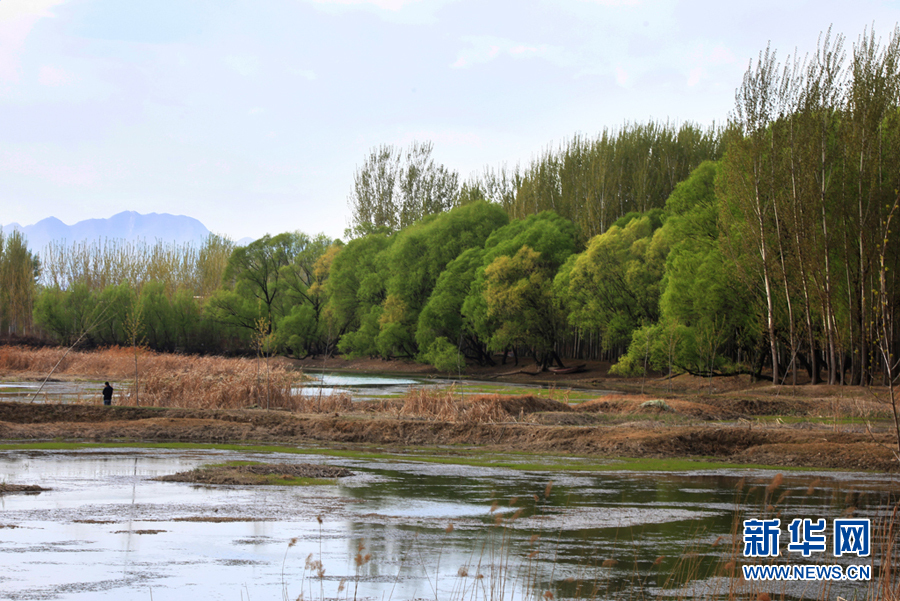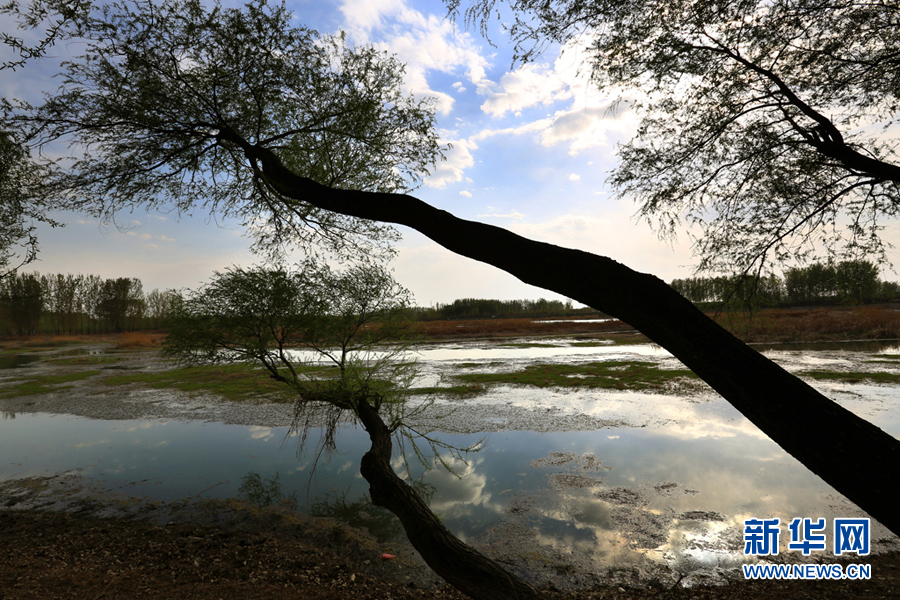淋河好女塔水岸的原生態旱柳成為一道獨特的生態景觀。新華網發(李江 攝)