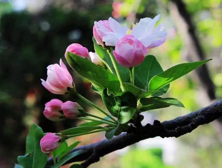 八棱海棠剛生出的花朵呈紅色,慢慢的展開后,由紅色變成粉紅色,再后來會變成粉白色。西府海棠的花顏色為花粉紅至紫紅色,花姿瀟灑,花香濃郁,沁人心脾。