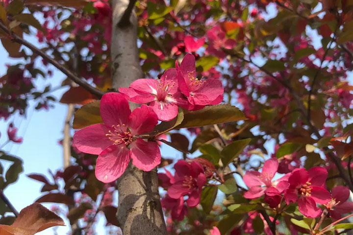 5.剪枝修整:北美海棠屬于落葉喬木,秋季時枯葉應及時清除,同時避免剪除主干上比較厚實的枝葉,以免傷及植株;如果需要整形剪枝,最好在春季萌芽開始之前進行,以利于新枝束的生長。