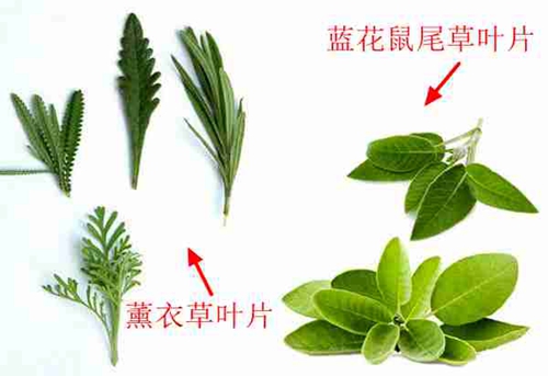 1.葉片:薰衣草的葉片多互生,為條形至披針形或羽狀分裂;而藍花鼠尾草葉片對生,長橢圓形或接近三角形,葉表有凹凸狀織紋。